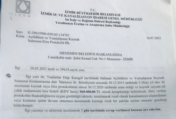İzmir Menemen Belediyesi'nde CHP'li Serdar Aksoy'un 'zimmet ve irtikap' suçlarından başkanlığının düşmesinin ardından 14 ay önce koltuğa AK Partili Aydın Pehlivan oturdu. Bunu hazmedemeyen İzmir Büyükşehir Belediyesi, AK Partili belediyeye yapmadığını bırakmadı. Başkan Pehlivan göreve gelince daha önce hibe ettiği ikinci el kıyafetleri geri alan, 5 adet oyun parkını da iade edilmesini isteyen Büyükşehir Belediyesi, Menemen Belediyesi’nin kullandığı İZSU’ya ait şişeleme fabrikasının kirasını 200 bin liradan 960 bin liraya yükselterek yüzde 400’e yakın zam yaptı
