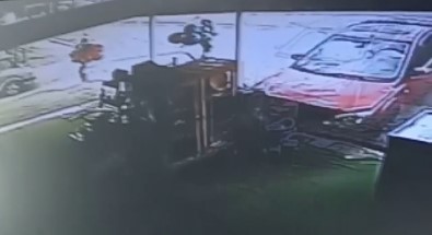 Kahramanmaras’ta meydana gelen trafik kazasinda direksiyon hakimiyetini kaybeden bir otomobil is yerine girdi. O anlar is yerinin güvenlik kamerasinca kaydedildi.