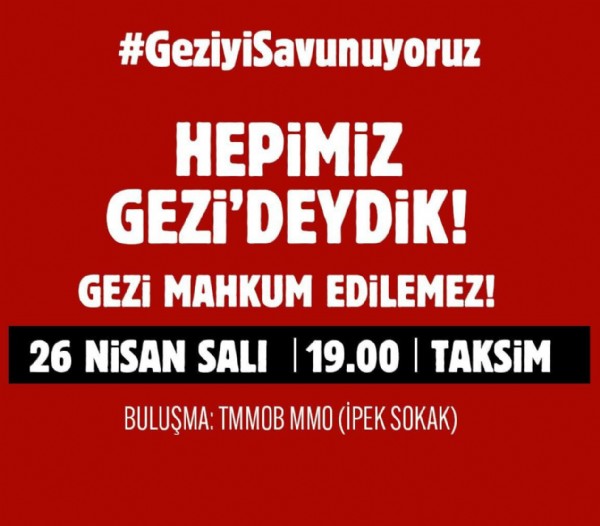 Gezi Parkı davasında yargılanan Osman Kavala, 4,5 yıllık aradan sonra ağırlaştırılmış müebbet hapis cezasına çarptırıldı. Tutuksuz sanıklar; Mücella Yapıcı, Çiğdem Mater, Hakan Altınay, Mine Özerden, Can Atalay, Tayfun Kahraman ve Yiğit Ali Ekmekçi ise 18’er yıl hapis cezası aldı. Mahkeme kararının ardından sosyal medyada provokasyon çağrıları yapılmaya başlandı. Yargı kararını tanımayan bazı topluluk ve platformlar, "Hepimiz Gezi'deydik" notuyla halkı sokağa çağırdı.