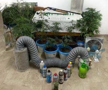 Balikesir’in Ayvalik ilçesinde jandarmanin bir eve düzenledigi operasyonda esrar, kenevir bitkisi ve kenevir yetistirmede kullanilan malzemeler ele geçirildi.