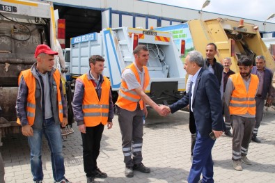 Isçilerin Ramazan Bayrami’ni da kutlayan Baskan Akkaya, onlarin talep ve isteklerini dinledikten sonra hatira fotografi çektirdi.