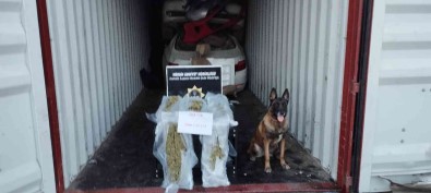 Yasal yükü oto yedek parçasi olan konteynerde, narkotik köpegi ’Mila’ marifetiyle yapilan aramalarda, valizler içerisinde toplam 5 paket halinde vakumlu posetlere yerlestirilmis, piyasa degeri yaklasik 750 bin TL olan, 5 kilo 800 gram uyusturucu Skunk maddesi ile kaçak oldugu tespit edilen elektronik ürünler ve cinsel içerikli malzemeler ele geçirildi.
