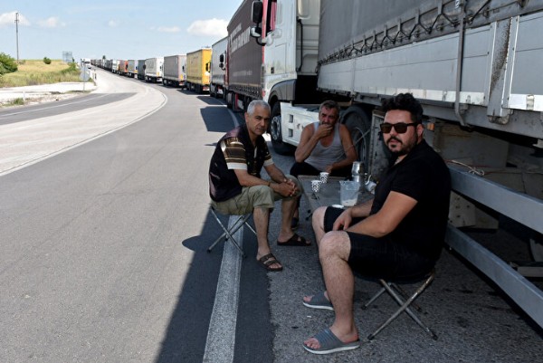 Hamzabeyli Sınır Kapısı'nda kuyrukta aşırı sıcak altında günlerce bekleyen TIR sürücüleri, bekleyişlerinin çileye dönüştüğünü söyledi.
