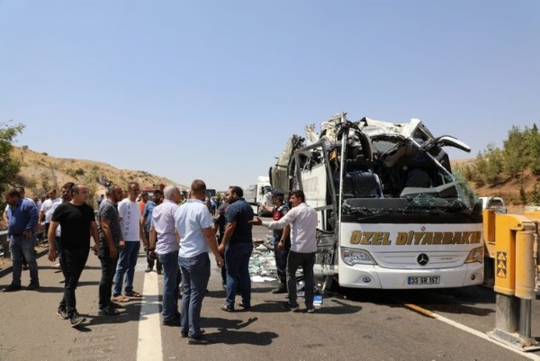 Ekiplerin kurtarma çalışması sürerken, kaza yerine yaklaşık 200 metre mesafede Özel Diyarbakır Turizm firmasına ait 33 SR 157 plakalı yolcu otobüsü devrildi.