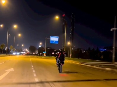 Bursa-Ankara Karayolu üzeri Inegöl girisinde seyir halinde olan bir motosikletlinin tehlikeli yolculugu yürekleri agza getirdi. Motosikletli, trafikte tek teker üzerinde metrelerce sov yaparak ilerledi. Tehlikeli sov, baska bir sürücü tarafindan cep telefonu kamerasi ile görüntülendi. Motosikletli, karayolunda akan trafige aldiris etmeden ön tekerini kaldirarak seyahat etti. Hiz sinirlarini asan sürücünün tehlikeli anlari, arkasindan gelen baska bir otomobil sürücüsü tarafindan kaydedildi. Sosyal medyada paylasilan görüntü, tepkilere yol açti.