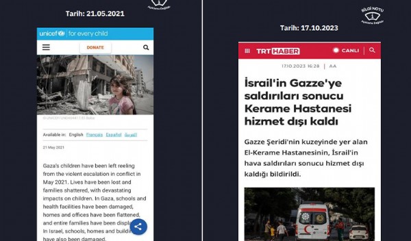 İsrail hastane vurmadığını iddia etse de Cumhurbaşkanlığı İletişim Başkanlığı Dezenformasyonla Mücadele Merkezi tarafından hazırlanan dosya, Gazze'deki hastanelerin defalarca İsrail füzelerine hedef olduğunu gözler önüne serdi.
