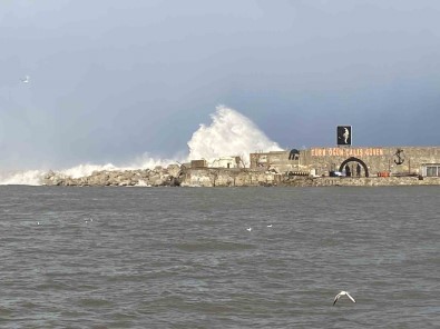 Zonguldak’ta sabah saatlerinde etkili olan firtina nedeniyle limanda dalgalar mendirekleri asti.