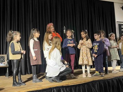 Sahneye çikan ögrenciler, hazirlanan torba içerisindeki kagitlari sira ile çekerek yazili olan kelimelerden bir hikaye olusturdular. Ardindan kirmizi, sari ve mavi ritim kartlari ile sarkilar söyleyen çocuklar, kirmizi rengi gördüklerinde yüksek sesle, sari rengi gördüklerinde düsük ses ile sarkilar söyleyerek eglendiler.