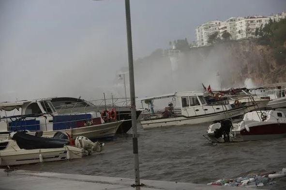 Meteorolojinin turuncu kod verdiği ve AFAD’dın vatandaşları uyardığı Antalya’da sağanak yağış ve fırtına etkili oluyor. Knet merkezinde saat 14.50’de başlayan fırtınanın hızı 80 kilometreye ulaştı. Fırtına ile birlikte denizde dev dalgalar oluştu. Antalya Yatı Limanı’nda tekneler oluşan fırtına nedeniyle zor anlar yaşadı. Bir tekne dalgalar nedeni ile zarar gördü. Konyaaltı Sahili’nde ise dalga boyu 6 metreye ulaştı.