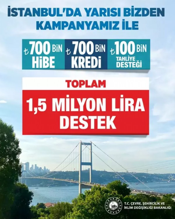 İSTANBUL'DA HER KONUT İÇİN 1,5 MİLYON TL DESTEK PAKETİ