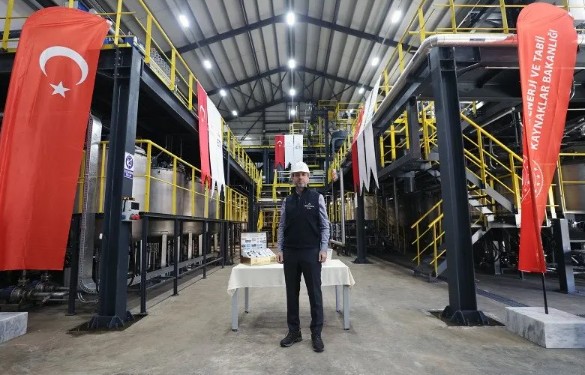 'Bu çerçevede biz de uzun yıllara dayanan araştırmalarımızın neticesinde Eskişehir Beylikova'da, şu anda içinde bulunduğumuz tesis ve etrafındaki sahalarda dünyanın tek yatakta en büyük ikinci rezervini keşfetmiş durumdayız. Eskişehir'deki maden işletmesi elektrikli araçlar ve yenilenebilir enerji teknolojileri konusunda Türkiye'yi çok önemli bir noktaya taşıyacak. Endüstriyel tesise geçilmesiyle birlikte Türkiye NTE üretebilen 5 ülkeden biri olacak ve dünyada önemli bir tedarikçi konumuna gelecek. Burada yaklaşık 690 milyon tonluk bir cevher var. Biz bu kaynağın işletilmesi ile alakalı ilk etapta bir pilot tesis kurduk ve geçtiğimiz nisanda Sayın Cumhurbaşkanımız buranın açılışını yapmıştı. İlk etapta 1200 tonluk bir cevher işleyeceğiz. Bu tesisten aldığımız neticeler sonucunda da yılda 570 bin tonluk cevheri işleyecek ve yaklaşık yılda 10 bin tonluk nadir toprak oksidi üretecek endüstriyel tesisi kurmayla alakalı çalışmalarımıza devam ediyoruz.'