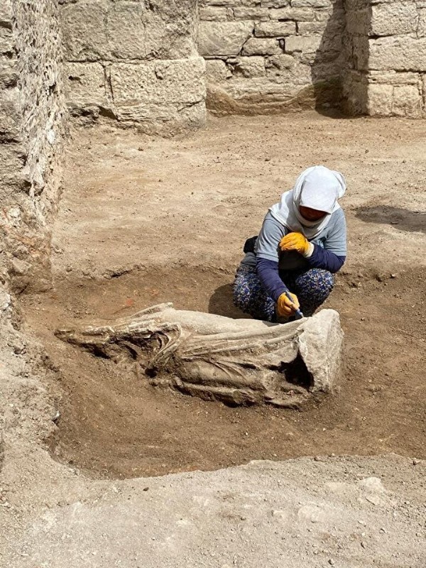 Çalışmalar kapsamında son olarak, 2 bin 175 yıl öncesine ait, Antik Dönem mitolojisinin ilham perilerinden 'Dans Eden Musa (Mousa)' heykeli, gün yüzüne çıkarıldı.