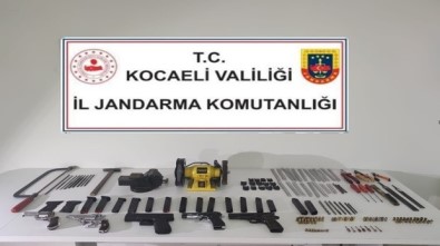 Kocaeli’nin Çayirova ilçesinde bir sahsin evine operasyon düzenlendi. Operasyonda onlarca tabanca, sarjör, fisek ve tabanca yapiminda kullanilan malzeme ele geçirildi.