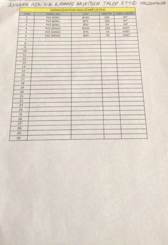 Depremde ağır hasar alan Kahramanmaraş'ın yeniden inşası için herkes seferber olurken Ankara Büyükşehir Belediyesi'nin altyapı çalışmaları için şart koşarak malzeme talep ettiği ortaya çıktı. Kahramanmaraş Belediyesi'nden malzeme talep eden Ankara Büyükşehir Belediyesi ayrıca malzemeler temin edilmezse çalışmaların yapılamayacağını belirtmiş. Sosyal medya hesabından talep edilen malzeme listesini paylaşan Ağrı Belediye Başkanı Savcı Sayan, 'Yazıklar olsun' ifadesini kullandı.