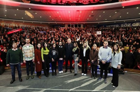 Erdoğan, gençlerin tertemiz yüzlerine baktıkça hep daha çok çalıştıklarını, ülkeye ve millete hizmet davasına daha sıkı sarıldıklarını vurgulayarak, 'Sizin umutlarınızın büyüklüğünü gördükçe omuzlarımızdaki yükün ağırlığının daha fazla farkına vardık. Sizin azminize ve becerinize şahit oldukça Türkiye'nin müreffeh ve mutlu geleceğine olan inancımızı daha da perçinledik. Siz bize ilham verdiniz, saldırılar karşısında direnme gücü verdiniz, daha büyük hedeflere yürüme cesareti verdiniz.' ifadelerini kullandı.