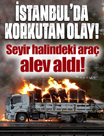 Arnavutköy'de seyir halindeki kamyon yandı
