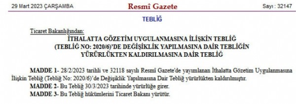 28 Şubat'ta “İthalatta Gözetim Uygulanmasına” ilişkin tebliğ, Ticaret Bakanlığı tarafından yayınlanmıştı.Tebliğe göre ithal cep telefonlarının birim gümrük kıymeti 200 dolardan 350 dolara çıkarılmıştı.