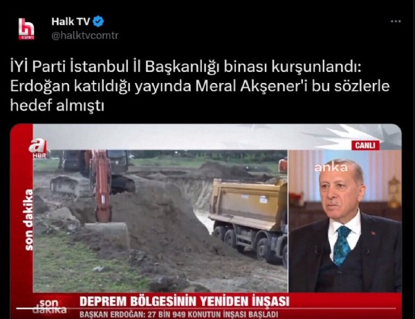 CHP'nin fonladığı Halk TV yine tetikçiliğe soyundu. Kanal, İYİ Parti İstanbul il başkanlığı binasına düzenlenen saldırıdan Cumhurbaşkanı Recep Tayyip Erdoğan'ı sorumlu tuttu. Halk TV Twitter hesabından İYİ Parti'ye saldırı haberini "İYİ Parti İstanbul İl Başkanlığı binası kurşunlandı: Erdoğan katıldığı yayında Meral Akşener'i bu sözlerle hedef almıştı" ifadeleriyle paylaştı.