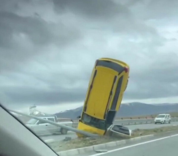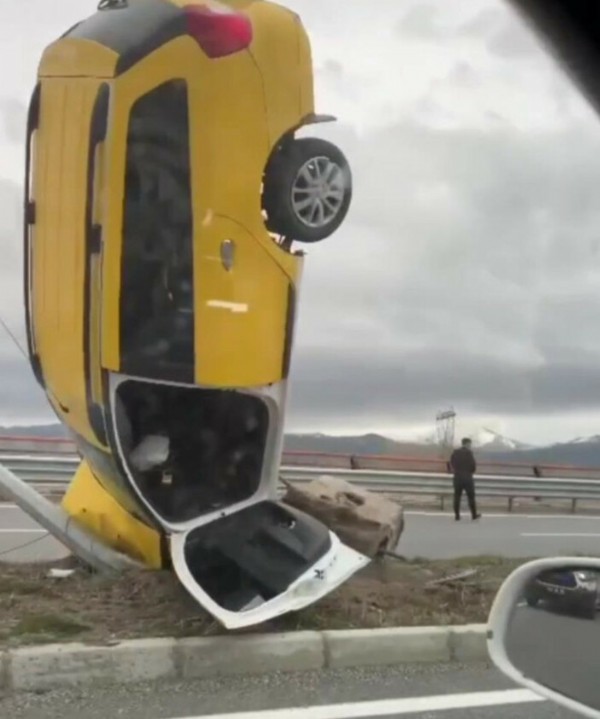 Van'da yaşanılan kazada, ilginç bir an yaşandı.Van-Erciş karayolu üzerinde meydana gelen olayda, Van'dan Erciş istikametine giden ve sürücüsünün ismi öğrenilemeyen otomobil, orta refüjde bulunan aydınlatma direğine çarptı. Otomobilin kaza sonrası dik şekilde durması görenleri hayrete düşürdü.