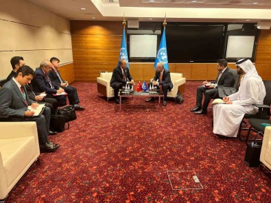 Disisleri Bakani Mevlüt Çavusoglu, Birlesmis Milletler En Az Gelismis Ülkeler 5. Konferansi’na (EAGÜ-V) katilmak üzere geldigi Katar’in baskenti Doha’da Birlesmis Milletler (BM) 77. Genel Kurulu Baskani Csaba Körösi ile bir araya geldi.