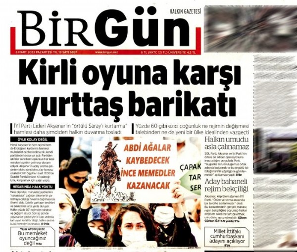 Öte yandan Birgün Gazetesi de Akşener'i hedef alarak, 'Örtülü Saray'ı kurtarma hamlesi' dedi.