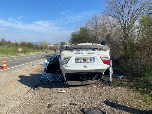 Bunun sonucunda otomobil, takla atarak yoldan çıktı. Kazayı görenlerin ihbarı üzerine olay yerine sağlık, itfaiye ve jandarma ekipleri sevk edildi. Devrilerek ters dönen araç içerisinde sıkışan sürücü ve araçtakiler ekiplerin yardımıyla çıkarılabildi.