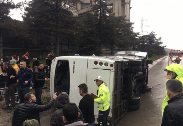Kazada midibüsteki 17 kişi yaralandı. İhbar üzerine kaza yerine çok sayıda polis, itfaiye ve sağlık ekibi sevk edildi.