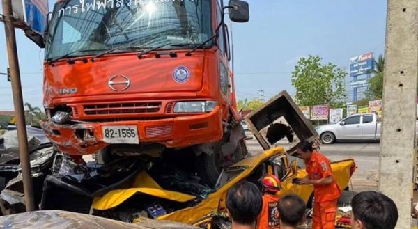 Feci kazada kamyonun altında kalan ve Tayland Karayolları'na ait olduğu öğrenilen araçtaki 2 kişi olay yerinde hayatını kaybetti. Cesetlerin araçtan güçlükle çıkarıldığı belirtildi.