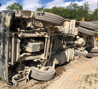 Adiyaman’in Gölbasi ilçesinde hafriyat kamyonun devrilmesi sonucu 1 kisi yaralandi.