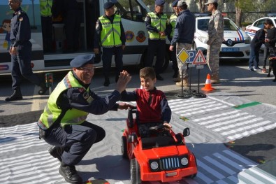 Izmir’in Menderes ilçesinde jandarma ekipleri, geçici olarak kentte bulunan 150 depremzede çocuga trafik egitimi verdi. Minikler, jandarma ekipleriyle birlikte nese dolu anlar yasadi.