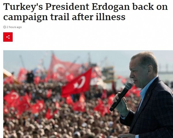 Geçtiğimiz günlerde geçirdiği rahatsızlığından eser olmadığı kaydedilen haberde BBC; Başkan Recep Tayyip Erdoğan'ın 40 dakika boyunca güçlü bir ses tonuyla konuşarak Türkiye'yi sadece kendisinin büyütebileceğini söylediğini aktardı.