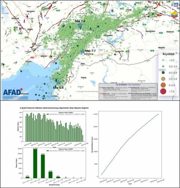 'Kahramanmaraş, Pazarcık ve Elbistan depremlerinden sonra 06 Şubat - 06 Nisan arası 24 bin 927 deprem meydana gelmiştir.