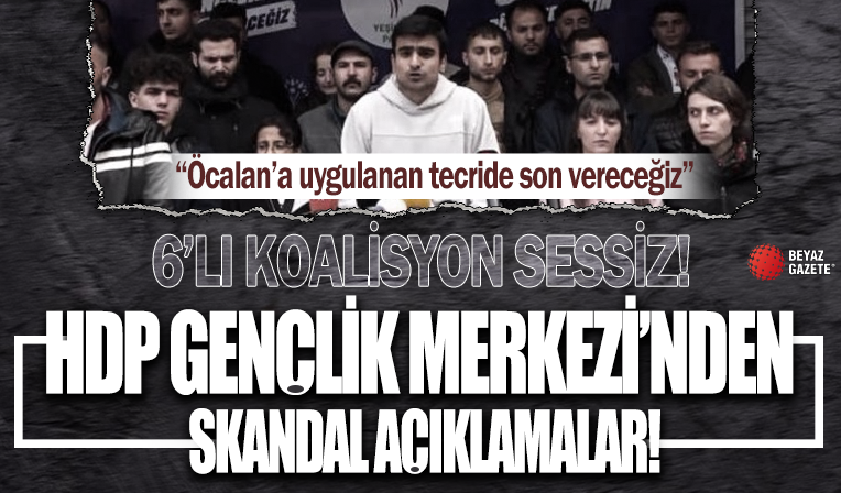 Aday çıkarmayarak 6'lı koalisyona destek olan HDP'nin Gençlik Merkezi'den skandal bir açıklama geldi. Yaptıkları basın toplantısında kayyumları kaldıracaklarını dile getiren Gençlik Merkezi üyeleri, "Abdullah Öcalan’a uygulamanan tecride son vereceğiz." ifadelerini kullandı.