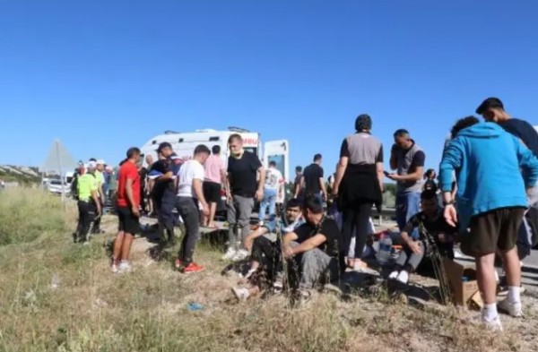 Eskişehir'de yol kenarındaki araziye düşen yolcu otobüsündeki 35 kişi yaralandı.