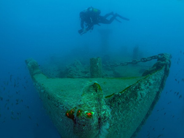 Antalya'da 30 metre derinlikteki Saint Didier batığı, su altı belgesel yapımcısı ve görüntü yönetmeni Tahsin Ceylan ile Sahil Güvenlik Dalış Emniyet Güvenlik ve Arama Kurtarma (DEGAK) timince görüntülendi.