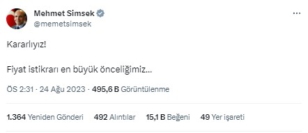 Karar sonrası sosyal medya hesabından açıklamalarda bulunan Hazine ve Maliye Bakanı Mehmet Şimşek şu ifadeleri kullandı: