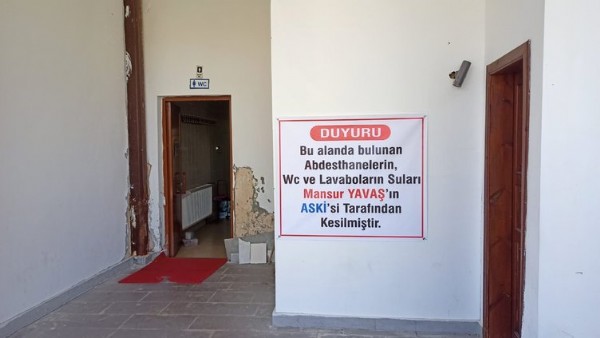 Çamlıdere Belediye Başkanı Hazım Caner Can, 'Seçimden önce 'Su hava gibi, insanlar için olmazsa olmaz ihtiyaçlarından birisidir. Sudan para almayacağım' diyen CHP'li Mansur Yavaş, Çamlıdere'de hafta sonları on binlerce kişinin ziyaret ettiği Allah'ın veli kullarından Hz. Ömer'in 4'üncü kuşaktan torunu Şeyh Ali Semerkandi Hazretleri'nin ebedi istinatgâhının tuvaletlerinin ve abdesthanelerinin 15 senedir akan suyunu 'kaçak' diyerek kesti.