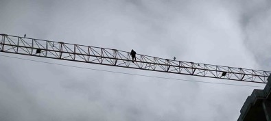 50 Metrelik Vincin Üzerine Çikip Asagi Atlayacagini Söyleyen Sahsi Annesi Ikna Etti