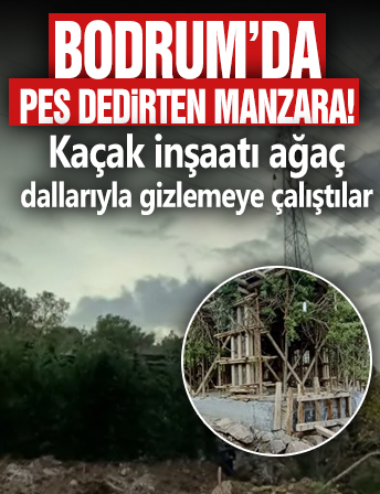 Bodrum’da pes dedirten manzara! Kaçak inşaatı ağaç dallarıyla gizlemeye çalıştılar
