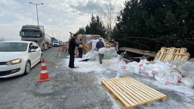 Kaza sebebiyle Tem Otoyolu’nun Istanbul istikametine trafik yogunlugu olustu. Devrilen tirin vinç vasitasiyla kaldirilmasiyla, araç geçisleri 2 seritten kontrollü olarak saglandi. Yola dökülen plastik ham madde ve streç film malzemelerinin kaldirilma çalismalari sürüyor.