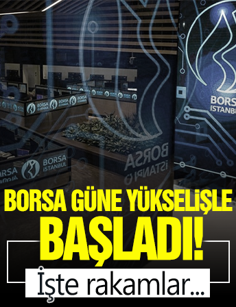 Borsa güne yükselişle başladı.Açılışta BIST 100 endeksi, önceki kapanışa göre 40,85 puan ve yüzde 0,48 değer kazanarak 8.512,55 puana çıktı.