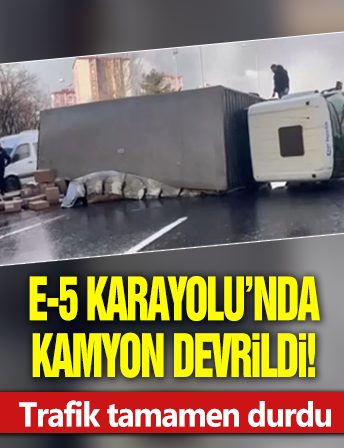Beylikdüzü E-5 Karayolu'nda seyir halindeki kamyon devrildi. Kamyon sürücüsü yaralanırken, E-5 Karayolu İstanbul istikametinde trafik tamamen durdu. Olay yerine polis ekipleri sevk edildi. Ekiplerin kaza yerinde çalışması devam ediyor.