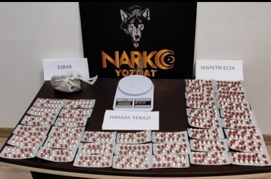 Yozgat’ta uyusturucu operasyonunda 546 sentetik hap ve 91 gram esrar ele geçirilirken gözaltina alinan bir da zanli tutuklandi.