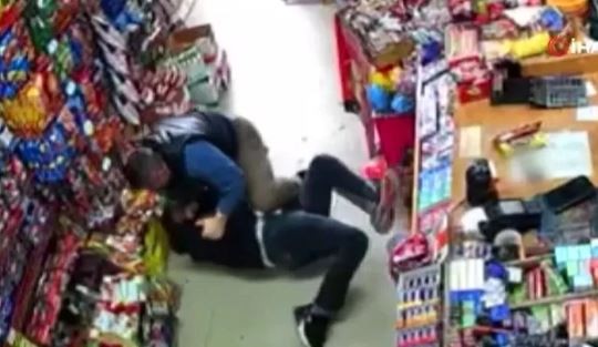 Bir süre ikili arasında tartışma yaşanmasının ardından şahıs sinirlenerek market sahibine yumruklarla vurmaya başladı. Çıkan kavgada markete ortalık karışırken taraflar birbirini adeta yerden yere vurdu.