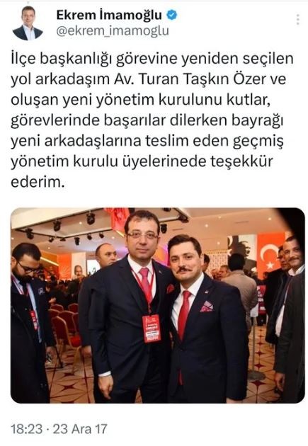 CHP'deki balya balya para sayma skandalında 3 isim de, skandalla ilgili "Benimle ilgisi yok" diyen İBB Başkanı Ekrem İmamoğlu'nun yol arkadaşı çıktı. Paraları İmamoğlu'nun danışmanı ve İBB Spor Kulübü Başkanı Fatih Keleş'e İmamoğlu'nun 2015'te CHP Beylikdüzü İlçe Başkanlığı'na getirdiği İstanbul milletvekili Turan Taşkın Özer verdi. Parayı ofiste sayan ve Keleş'in taşımasına yardımcı olan isim ise İmamoğlu İnşaat Genel Müdürü Tuncay Yılmaz oldu. Özer 'tanık' sıfatıyla, paraların taşınmasına yardım eden Tuncay Yılmaz ise 'şüpheli' sıfatıyla savcılığa ifade verecek.