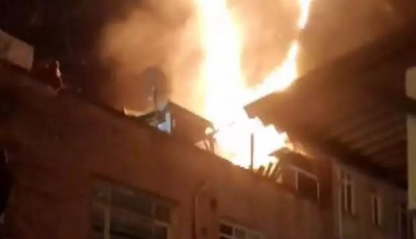 Fatih'te gece saatlerinde 5 katlı binanın çatısında yangın çıktı. Yangına müdahale için gelen itfaiye ekipleri dar sokaklarda ilerlemekte güçlük çekerken, binanın çatısı alev alev yandı. Metrelerce mesafeden hortum uzatarak yangına müdahale eden ekipler, yangını güçlükle söndürdü.Yangın, saat 02.00 sıralarında Şehremini Mahallesi Küçük Saray Meydanı Sokak'ta bulunan 5 katlı binada çıktı. Binanın çatısından alevlerin yükseldiğini gören mahalle sakinleri önce komşuları uyardı sonra da durumu itfaiye, polis ve sağlık ekiplerine haber verdi. Bu sırada alevler çatıdan diğer binaya sıçradı.