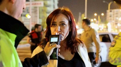 Durdurulduktan sonra araçtan indirilen ve isminin Gülten Nas Y. (49) oldugu belirlenen kadin sürücü rahat tavir ve hareketleriyle dikkat çekti. Ehliyet ve ruhsat kontrolünden geçirilen kadin sürücüye alkol kontrolü yapmak isteyen polis memurlarinin üfleme egitimi ile imtihani burada basladi.