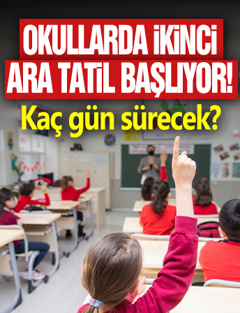Okullarda ikinci ara tatil bugün başlıyor. Yaklaşık 20 milyon öğrenci hem ara tatil hem de bayram heyecanını bir arada yaşayacak. Öğrenciler, 15 Nisan'da ikinci döneme kaldığı yerden devam edecek.