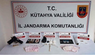 Il Jandarma Komutanligi unsurlarinca uyusturucu ile mücadele çerçevesinde yapilan çalismalar neticesinde Kütahya’nin merkez ilçesi Dumlupinar Mahallesi’nde G.B., H.E., Y.M.A., E.Y., I.E. ve B.H. isimli sahislar uyusturucu madde ticareti yaptiklari esnada suçüstü yakalandi. Olayla ilgili Dumlupinar Mahallesi’nde bir adreste, araçta ve sahislarin üzerlerinde yapilan arama sonucu, 92 gram metamfetamin, 2 adet hassas terazi, 2 gram kubar esrar, 22 adet sentetik ecza, 3 adet uyusturucu madde kullanma aparati, 1 adet tabanca, 4 adet tabanca fisegi, 1 rulo alüminyum folyo, 11 bin 750 TL suçtan elde edildigi degerlendirilen para ele geçirildi.