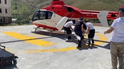 Bahçesaray'da Ambulans Helikopter Yüksekten Düsen Hasta Için Havalandi